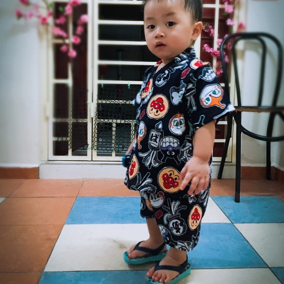 Item: Okiddo Collection - Momotaro 2PC Kimono (Jinbei) Boy Suit Fabric: 100% Japanese cottonTexture: Smooth flat Pattern: MomotaroMomotarō is a popular hero of Japanese folklore originating from Okayama Prefecture.