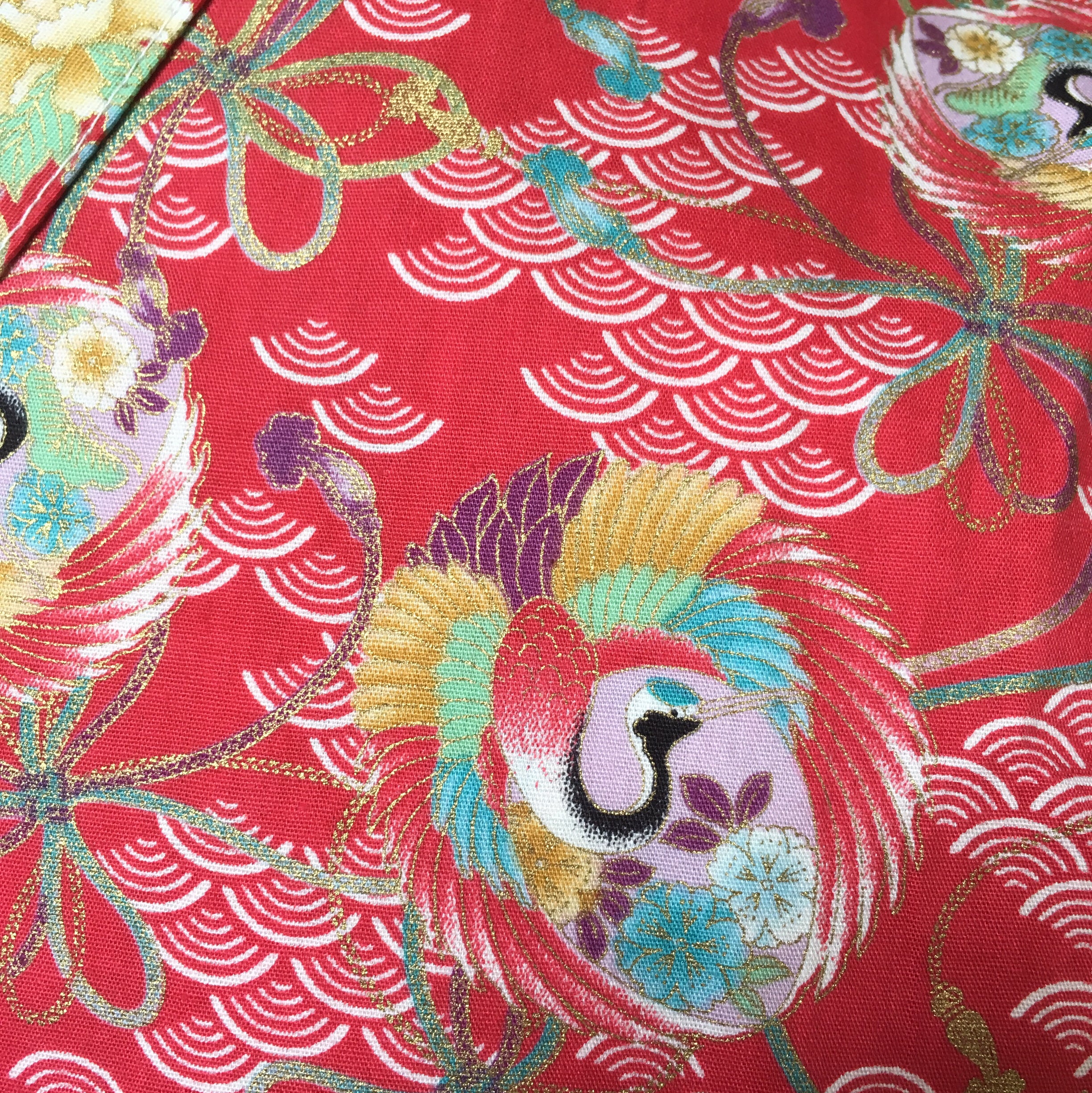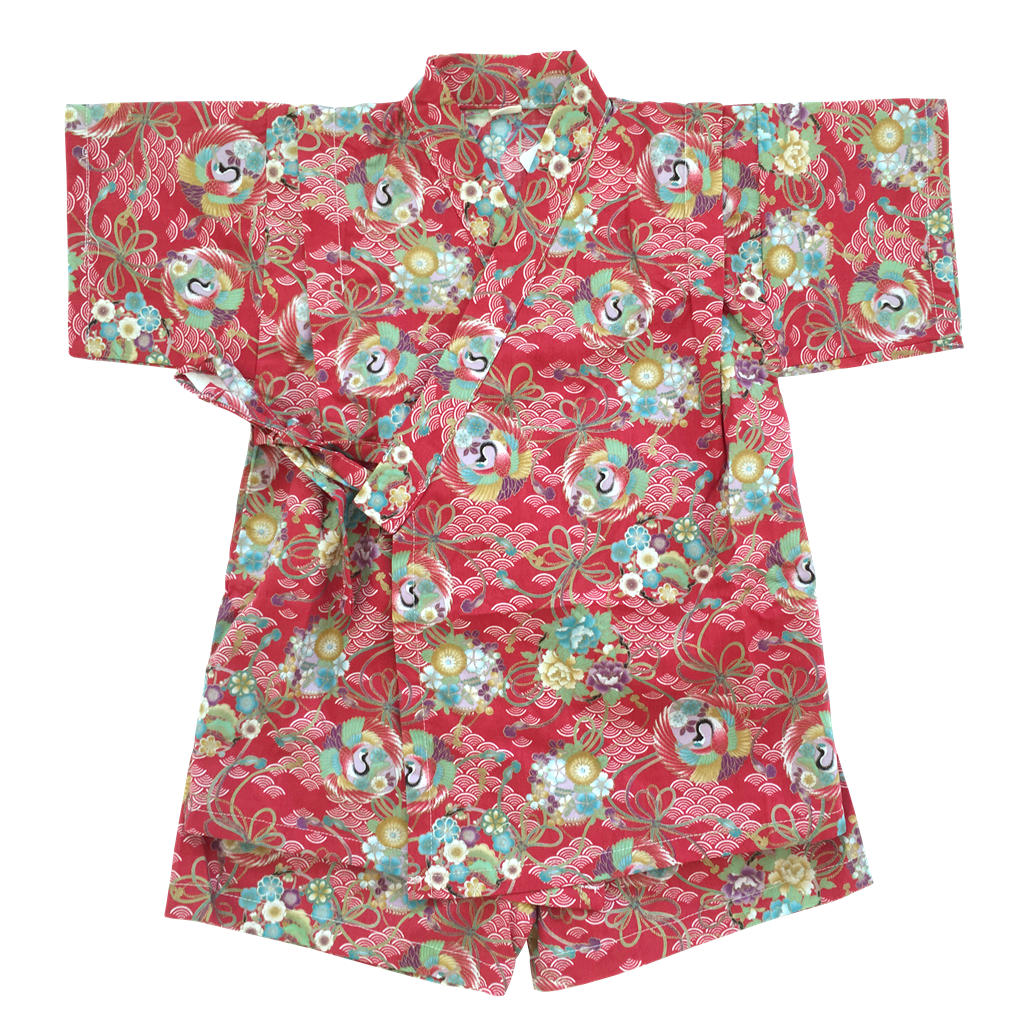 Item: Okiddo Original - Bronzing Round Crane 2PC Kimono (Jinbei) Suit Fabric: 100% Japanese cottonTexture: Smooth flat with bronzingPattern: Crane (Tsuru)In Japan, the crane or tsuru, is a national treasure. It is the symbol of longevity and good luck because it was thought to have a life span of a thousand years.